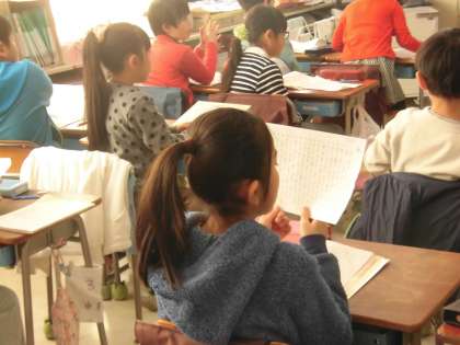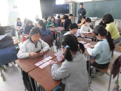 1月17日の学校公開日には、全ての学級で教科「日本語」の授業を公開しました。季節を表す言葉を考えたり、昔遊びのこつを発表したり、漢詩に取り組んだりしました。3・4年生は百人一首で日本の豊かな言葉やリズムを楽しみました。