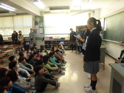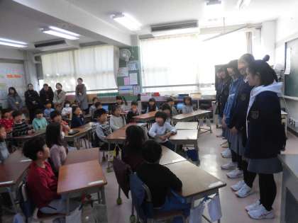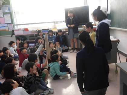 たくさんの国の文化を、たくさんの資料を提示しながら楽しく教えてくださいました。交流活動をする子供たちの顔・・・小学生も高校生も輝いていました。