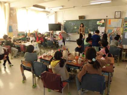 わくわくパーティが終わると、2年生は各学級で振り返りを行いました。先生が「ふわふわ言葉で1年生をお迎えすることができましたか。」「ありがとうと言ってもらえましたか。」「わくわくパーティーは楽しかったですか。」と問いかけると「はい。」と大きな声で返事をしながら手を挙げる子供たち。うれしそうな表情の子供たちがたくさんいました。充実した2時間であったことが子供たちの笑顔からたくさん伝わってきました。