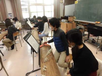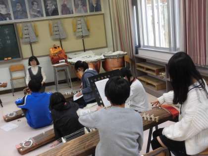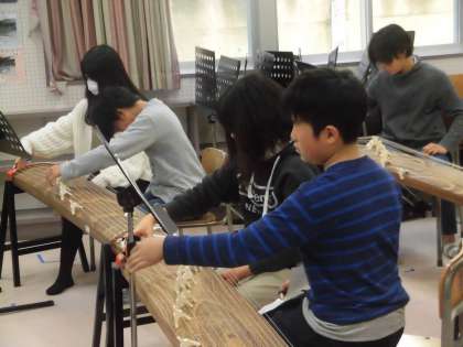 6年生が音楽の時間に日本の伝統・文化に触れる活動を行いました。箏の体験です。みんな真剣です。美しい日本の音色と調べが音楽室に響き渡りました。日本の伝統的な文化にたくさん触れ、世界に発信していく担い手になってほしいと願っています。