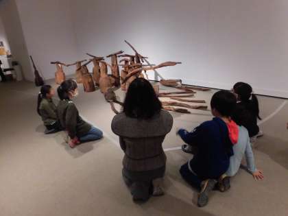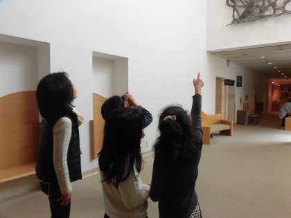 下から見上げたり、座ったり、様々な方向から見たり、友達を話し合ったり・・・熱心に鑑賞する子供たちの姿をうれしい気持ちで見守りました。