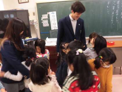 授業が終わったあと、高校生と子供たちの交流の場面がたくさんありました。写真は休み時間の様子です。とてもほほえましい和やかな時間でした。1月の国際高校生との交流は学校公開期間に行われましたので、保護者の皆様からもご感想をたくさんいただきました。「高校生とのふれあいはとても楽しそうで、学びもありすてきな時間です。」「高校生とのコミュニケーションでは子供たちが楽しそうで見ていて笑顔になりました。」「子供たちがグローバルなことに驚きました。」「高校生もとても工夫してきてくれていたようで、とても充実した内容でした。」ほかにもたくさんのご感想をいただきました。ありがとうございました。池之上小学校の特色ある教育活動として、これからも大切につながっていきたいと思っています。