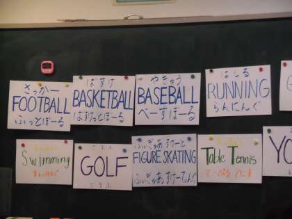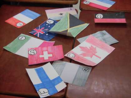 資料もたくさん用意してくれました。ゲームなども取り入れながら楽しい授業をつくっていました。池之上小の子供たちも共に楽しみ、様々な国の理解を深めようとしていました。