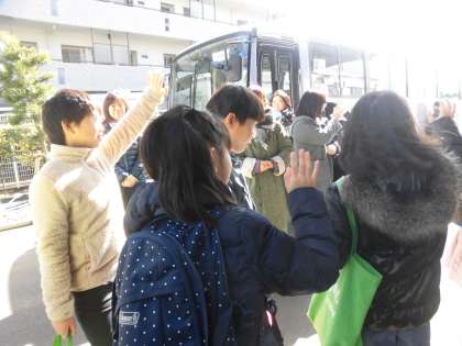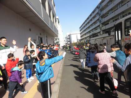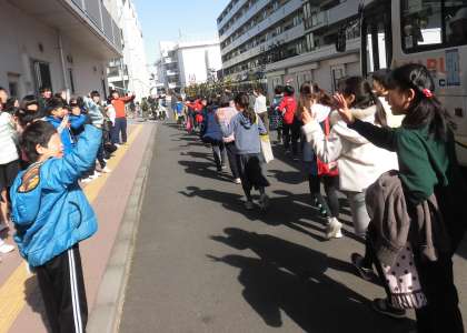 青光学園の子供たちが皆でお見送りをしてくれました。池之上小学校の4年生も手を振って応えていました。両校の子供たちの様子を見ていると、今日のこの交流が充実していたことがわかります。これから先も・・・子供たちが社会で活躍するときも、あたたかな心で多くの人との豊かな交流を実現してほしいと願ってやみません。