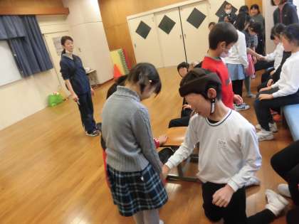 1時間の交流の感想を伝えました。お別れに握手を交わすグループもありました。「一緒に遊ぼう!」の一言が心をつなぐ・・・青光学園の先生から教えていただいたとおり、子供たちはすぐに打ち解け、仲よく遊ぶことができました。