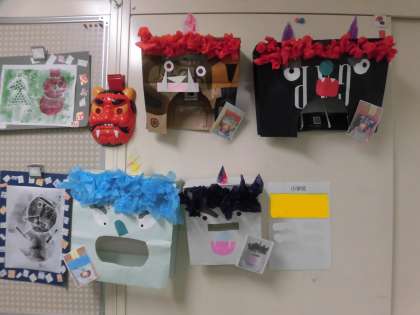 4年生の子供たちはみんなであたたかな心を発揮しました。そしてルールを守りがんばりました。くつもていねいにそろえていました。2・3枚目の写真は青光学園の子供たちの作品です。かわいらしい作品、学園にはたくさんの子供たちの作品であふれていました。