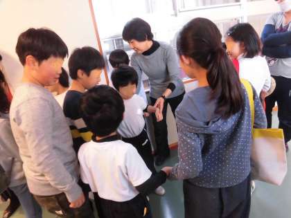 2月12日、4年生の子供たちと都立久我山青光学園の子供たちの交流活動が行われました。4年生が毎年2回行っている交流活動の第2回目です。学園に着くと、先生方にあいさつをして、いよいよ交流活動がスタートしました。お迎えに来てくれた青光学園の子供たちとの再会の場面です。1回目の交流のことを覚えている子供たちがたくさんいました。手をつないで教室に向かう子もいました。握手を交わす子もいました。