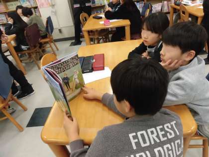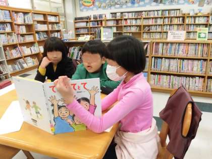 先生が選んだ本をみんなで読み合いました。長文の絵本もありましたがしっかり読み、真剣に聞くことができました。
