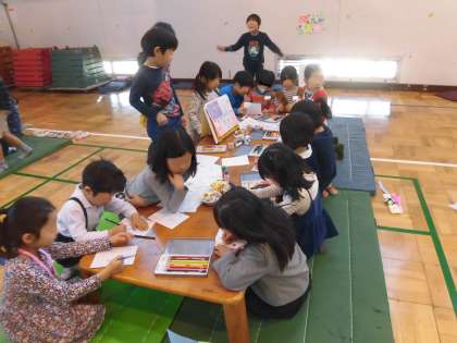 「ぬりえやコーナー」です。ぬりえが上手にできるようにたくさんの見本や説明ポスター、看板なども準備してありました。1年生の子供たちが、今日の日を迎えるまでにどれだけがんばったのか、それぞれのコーナーから伝わってきます。一生懸命に準備してきた姿が目に浮かんできます。