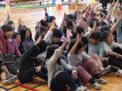2月21日、4月から新1年生になる幼稚園・保育園の小さなお友達をお迎えするために1年生の子供たちが「わくわくパーティ」を計画しました。そして「新しく入学する1年生を楽しませるためにがんばろう」を合言葉にたくさんの準備をしてきました。今日は、その本番の日です。受付を終えた幼稚園・保育園生と手をつなぎ、案内する1年生から思いやりの気持ちが伝わってきました。体育館には手作りコーナーがたくさん並んでいます。喜んでもらうために作った手作りのプレゼントもいっぱいです。