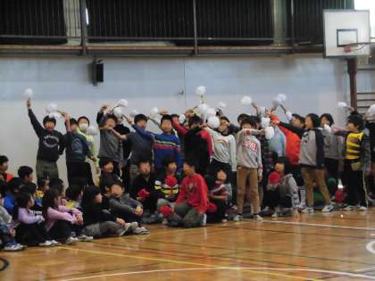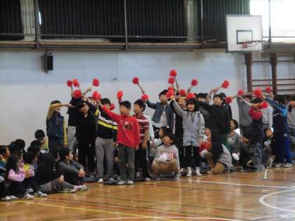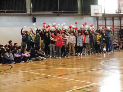 4年生の出し物です。呼びかけでは、6年生のよさをたくさん紹介しました。そして、「そういう6年生にわたしたちもなりたい。」と伝えました。次に「ありがとう」の歌を心を込めて披露しました。感謝の心がぎっしりと詰められた、心に響くあたたかな歌声でした。赤と白の花が4年生の歌を飾りました。優しさあふれる4年生のプレゼント・・・すてきでした。