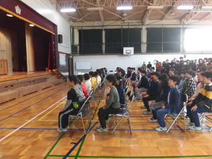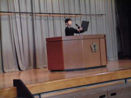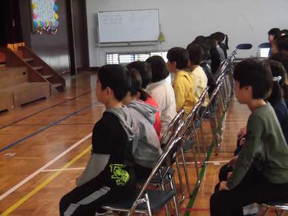 「春が一歩一歩近づいています。来週からは本格的な春の気候になり、木々の芽もぐんぐん成長していくことでしょう。そして、桜の花の咲く頃、皆さんは、5年生に進級します。いよいよ高学年の仲間入りです。皆さんもきっと、5年生になることを少しの不安とたくさんのわくわくで進級への準備をしていることと思います。今日開催する二分の一成人式は、20歳の折り返しでもありますが、池之上小学校では、中学年を卒業する卒業式、高学年の仲間入りをする出発式だと思っています。皆さんは、この4年間で大きく成長しました。皆さんの姿を見ていると、よく考え、たくさんのことに気付き、その気付きをみんなで話し合い、毎日の生活の中でしっかり生かしていくことができました。4年生の立派な姿をいつもうれしい気持ちで見ていました。そんな4年生ですからきっと、4月から、たくましくて思いやりのある5年生として、6年生と協力しながら池之上小学校を支えてくれるだろうと、思っています。さらに1年後、皆さんが最上級生となる2020年は、ここ東京でオリンピック・パラリンピックが開催されます。世界中のたくさんの人たちが日本を訪れます。言葉の異なる人たち、文化の異なる人たち、障害があっても努力を続ける人たち・・・立場の違うたくさんの人たちとの交流がたくさんの場であることでしょう。皆さんもその輪の中に入っていきます。また2020年は、池之上小学校創立80周年を迎えます。80歳をお祝いする行事がたくさん行われます。皆さんは、その年、6年生として池之上小学校をリードしていくことになります。今、ここにいる4年生なら、きっと池之上小学校を支え、下級生をやさしく導いてくれることと確信しています。皆さんの活躍が目に浮かんできます。今日、これから述べる決意を大切に、これからもがんばってほしいと願っています。」