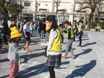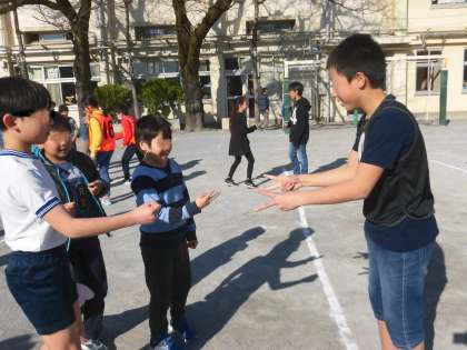 3月15日、最後の集会で楽しいじゃんけんゲームを行いました。もうすぐ卒業する6年生が、じゃんけんの相手として協力してくれました。1年生から6年生までが楽しめるすてきなゲームです。