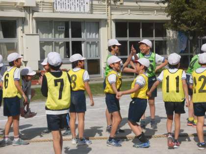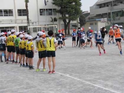楽しい鬼ごっこも考えました。5年生と6年生がみんなで仲よく過ごす楽しい交流の時間になりました。