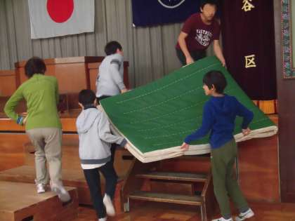 6年生の卒業式まで残すところ5日となった3月15日。5年生の子供たちが体育館の片付けや掃除を行いました。卒業式式場づくりです。どの子も意欲的に行動していました。自分のできる仕事を見つけ、友達と協力して、式場づくりに取り組みました。実にはつらつと動いています。3枚目の写真は、次の仕事を意識して思わず走り出している子供たちの様子を写したものです。積極的な態度に教職員皆、感心していました。4月から最上級生になる5年生。きっと最高学年として学校を支え、リードしてくれることでしょう。