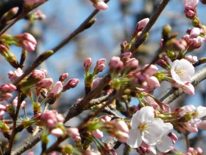 東京でも開花宣言された桜の花。陽あたりのよいところでは、学校の桜も多くの花が可憐に風に揺れています。まだまだ、つぼみたくさん・・・子供たち一人一人のよさがみんな違うように、桜の花も一つ一つのよさを私たちに伝えます。桜の花やつぼみに見守られながら、この学年での最後の日、修了の日を迎えました。