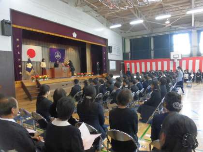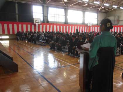 卒業生一人一人に卒業証書を手渡しました。胸をはって、顔を上げ、夢や希望、思い出や大切にしてきたことを伝える卒業生。一生懸命に、堂々と・・・その声と姿にただただ感動するばかりです。「おめでとう」の言葉を添えて渡した卒業証書を、卒業生たちは、「ありがとうございます」と言葉で返したり、大きく首を縦に振り応えたり、微笑みを返したり・・・ほんの一瞬の空間と時間の中に、これまでの一人一人のがんばりがいっぱいあふれました。