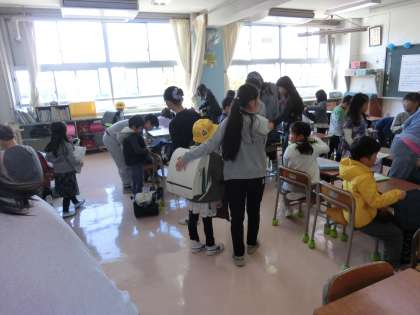 教室まで案内したり、ランドセルからの荷物の出し入れを補助したり