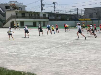 高学年リレー選手は、バトンパスやスタートを繰り返し、繰り返し、