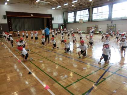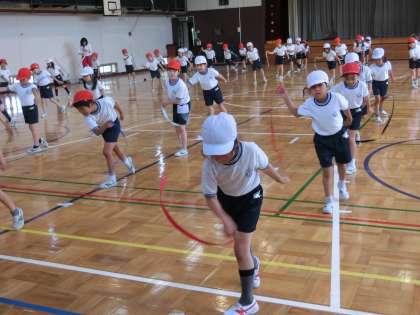 今週は、校庭での隊形つくりも加わります。