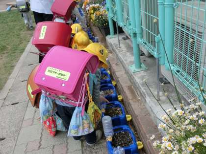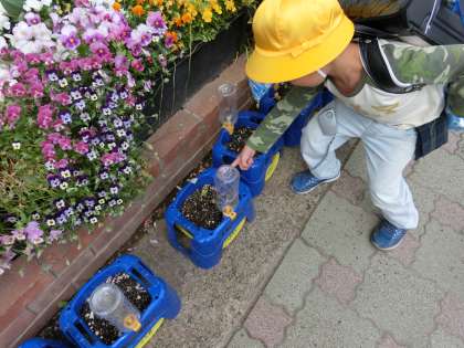 生活科の授業で、アサガオの種植えをしました。