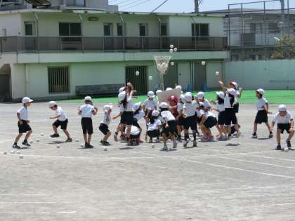 1年生の団体種目「チェッコリ玉入れ」。