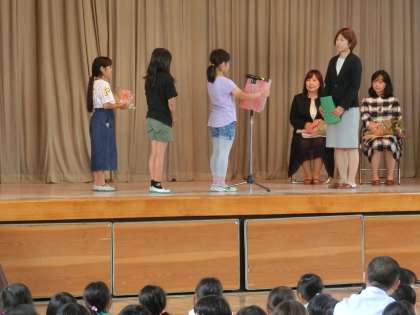 最後に5年生女子がお別れの気持ちを込めた花束を渡しました。