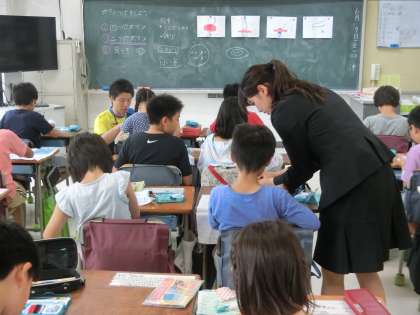 今日の2校時は、隣の5年1組の國宗先生の学級で