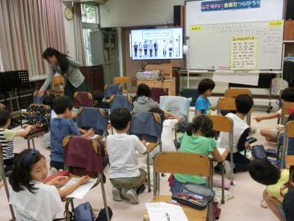 リコーダーを吹くときの姿勢や息の使い方を身に付けていきます。