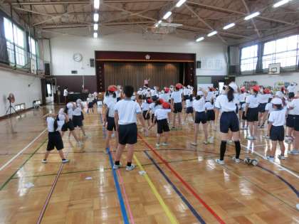 新スポーツテスト、今日は、1年生と6年生がペアを組んで