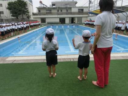 1年生のクラス代表が、今シーズンの体育・水遊び学習の抱負、目標を