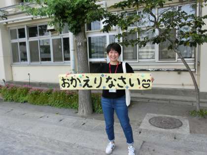 校庭門を入ると、保護者の方お手製の「おかえりなさい」メッセージが