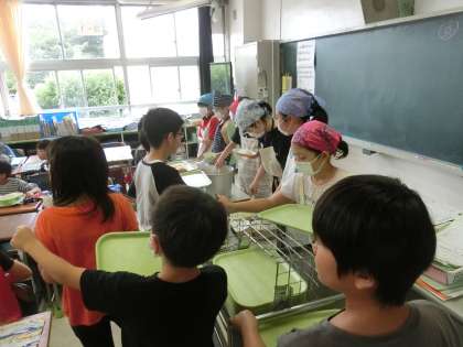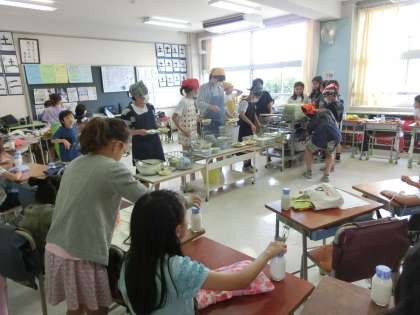 今日のお昼は、異学年交流「なかよし班給食」です。