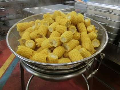 調理員の方にお願いして、茹でたばかりのとうもろこし、