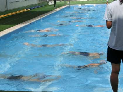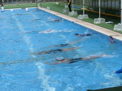 いつもは100人以上で使うプールを29人で広々と使えるので、
