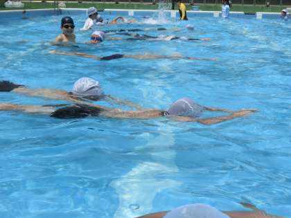 プール日和の中、水泳教室を楽しんでいました。