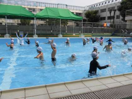 今日の水泳教室は、1回目の低学年だけとなってしまいました。2回目以降は、気温・熱中症指数が、基準を越えてしまい、中止としました。