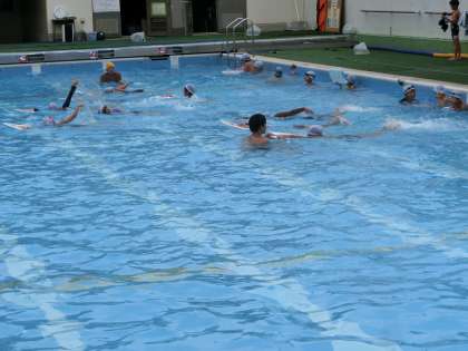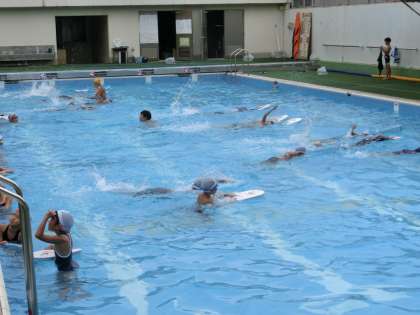 おおむね1学級分ほどの人数で、プールが広々と使えていました。