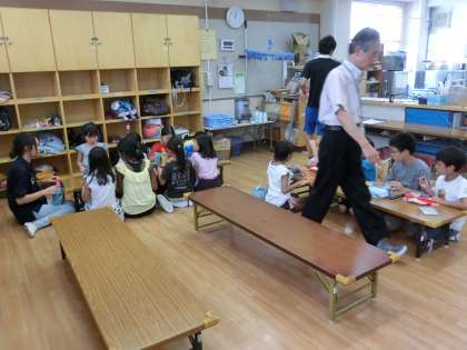 後期の夏季水泳教室、1,2年生の部の最中、