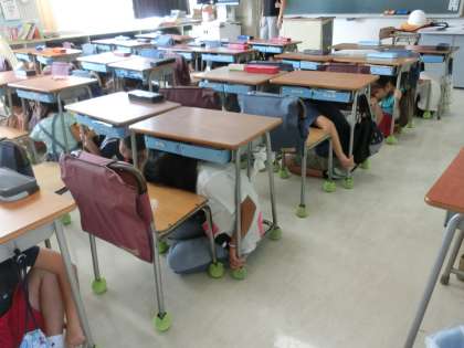 想定として、気象庁の緊急地震速報を受けての訓練でした。