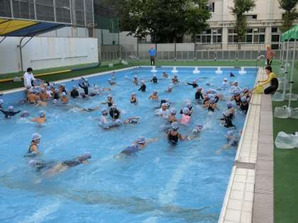 昨年より水に慣れ、水遊びを楽しめるようになった2年生。