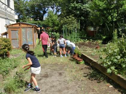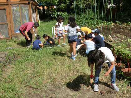 男子女子の区別なく、草むらをかき分け、虫探しに夢中になっていました。