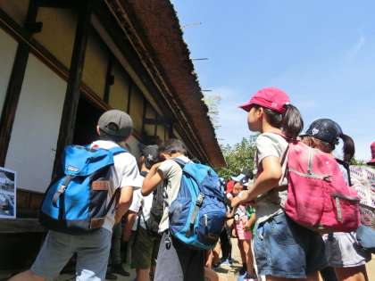 区内にあった農家が移築された古民家の前で、