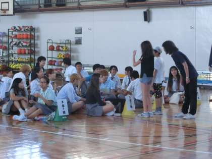 9時過ぎには、体育館に国際高校生徒の皆さんが集合し、