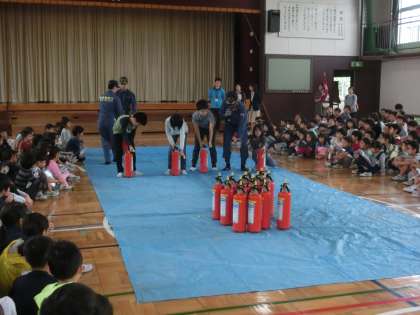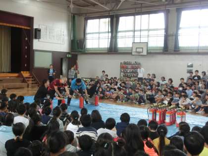 体育館では、北沢消防署の消防士の方にご指導いただき、