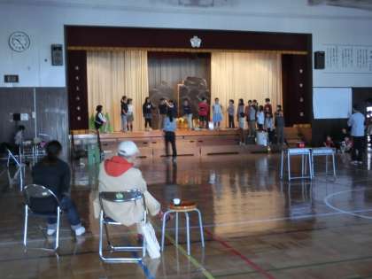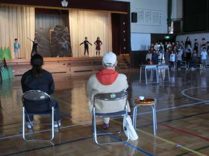 劇団東京乾電池の劇団員の方々が、池之上の子供たちの学芸会練習を