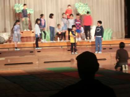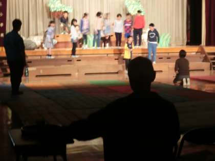 劇団東京乾電池の劇団員の方々が、池之上の子供たちの学芸会練習を