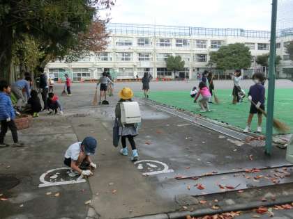 なかよし班での落ち葉掃き、続けています!
