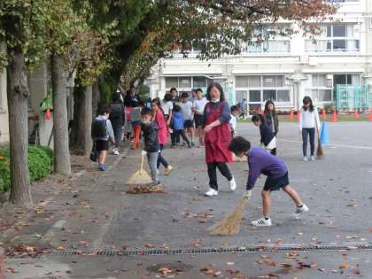 校庭の樹木から落ち葉も量を増し、