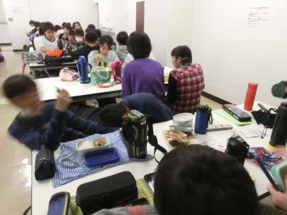 6年生社会科見学、お弁当タイム。